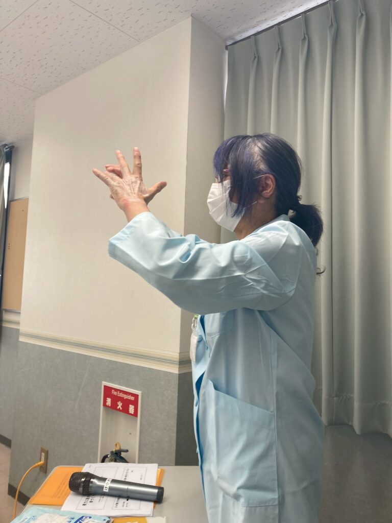 手が滑らかになったところで、次は指の体操です。「いちにのさ~んのしのにのご~」の歌に合わせて指の体操をしました。